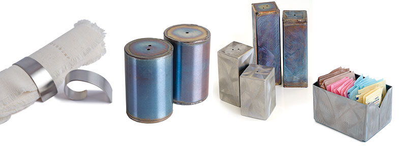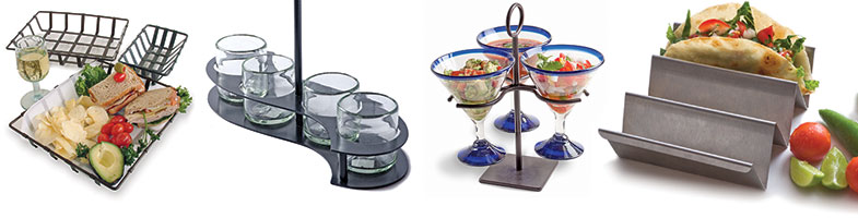 salt & pepper holders, napkin rings, taco holders, table lighting, sandwich baskets, samplers.