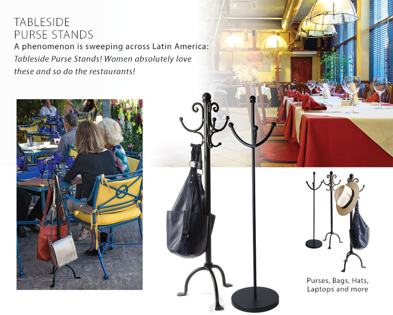 Tableside Purse Stands-Wrought Iron • I2233-B “Scroll” Purse Stand w/ Feet 40" Black